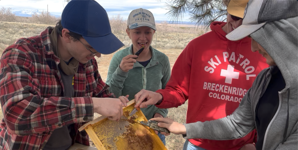 On our college campus, we have the double hardship of keeping bees at a latitude of exactly 37° 52’ 02” and at an elevation of 7,500 feet above sea level. We generally get about 3 to 4 feet of snow (2022 saw 10 feet of snowfall) when we are not in the depths of a drought, and we see temperatures down as low as 10°F to 0°F (-12°C to -18°C). With these kinds of challenges, we often find the best answers to keeping bees by stopping and looking back rather than forging blindly ahead.