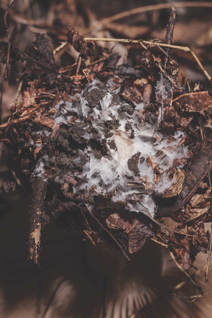 Below us, a highway system of fantastic complexity, moving in all three dimensions. It is white-ish, fuzzy, and tiny in its width. It gathers around itself a collection of resources—”food”— which it digests outside of itself, breaking down materials into their constituent parts: nutrients, enzymes, and sugars. These then go speeding along the superhighway system called the mycorrhizal network. Let’s lean in and get to know it a little better.